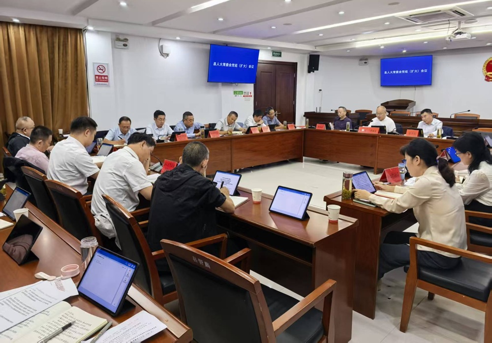 9月25日,县人大常委会党组书记、主任吴梅生主持召开党组扩大会议。县人大常委会副主任余泽红、徐长春和党组成员檀军参加会议,机关各委室负责人列席会议。