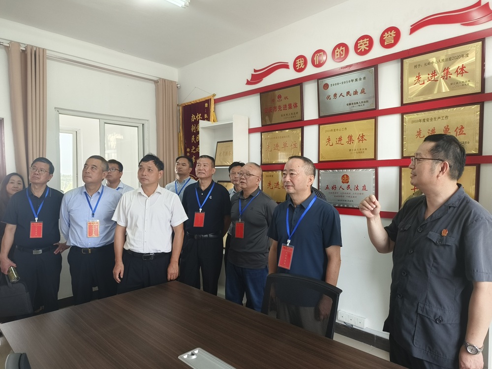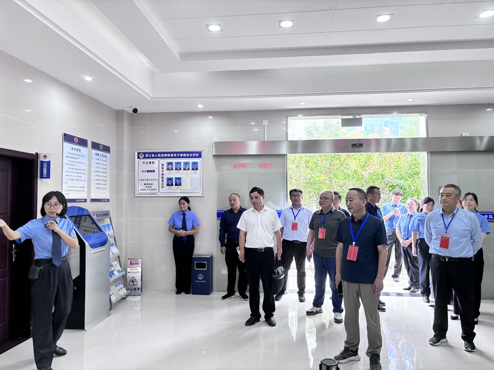 徐长春一行通过实地参观、座谈交流等方式,深入了解“两院”的法治队伍建设及特色工作实践。在县法院,代表们参观了长岭中心法庭、县法院诉讼服务中心,听取土永村“小冯说彩礼”普法活动介绍。在检察院,代表们实地参观了12309检察服务中心、三孝调解室、新媒体工作室,并进行了座谈交流。