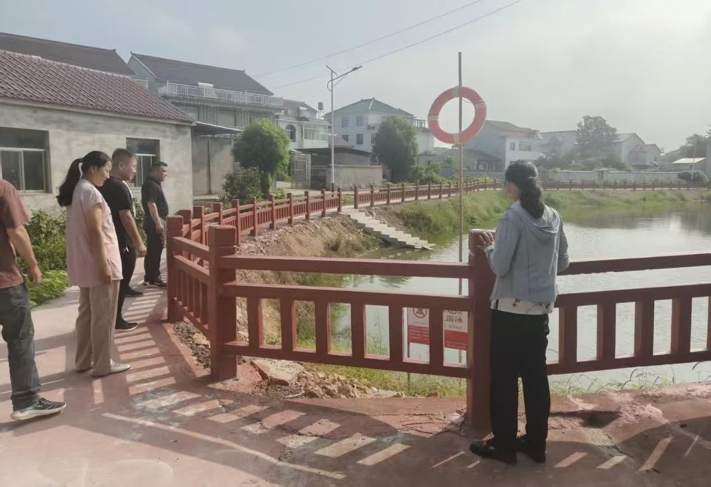代表们实地查看了锡湾屋角塘的水域整治、周边栏杆安装、防溺水警示牌设置以及救生圈、救生杆等设施的配备情况,确保每一处水域都做到“防护到位、警示醒目、救援有备”。